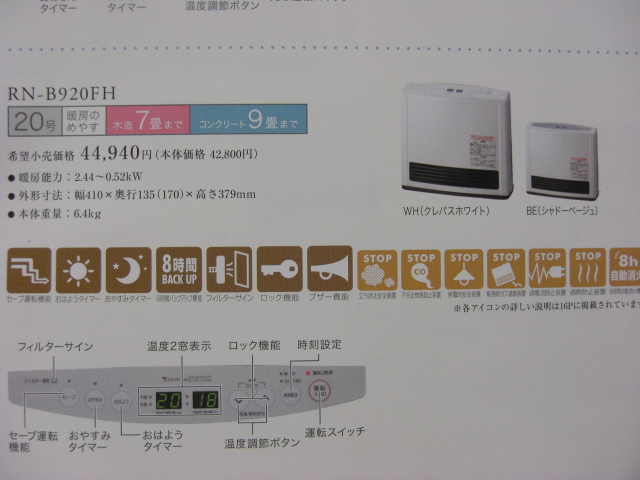 東京ガス 09年モデル RN-B920FH=BE・都市ガス用・リンナイ製